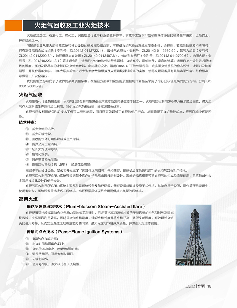 超低氮燃燒技術、 富氧純氧燃燒工程技術、 廢液廢氣焚燒工程技術、 工業廢氣VOCs綜合治理技術、 火炬氣回收及工業火炬技術、 點火及摻燒技術、